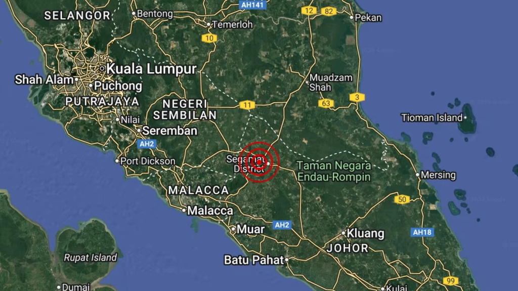 他指出,上周日柔佛共发生两次地震,第一次为4.1级,震央在昔市麻坡路一带;第二次为2.8级,位于居銮西北约28公里处,两次震源深度均为10公里。他形容,今早的震感与第二次2.8级余震相似。