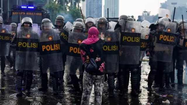 印尼示威者与镇暴警察爆发激烈冲突 警方发射催泪弹驱散群众