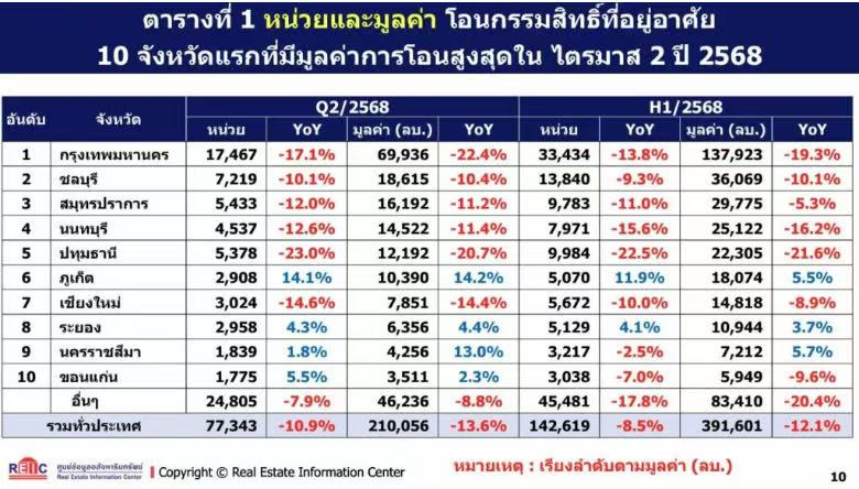 泰国住宅开发商协会名誉主席伊萨拉表示,过户量最高的十大府大多是曼谷及周边地区,少数是旅游城市,如春武里、普吉、清迈、工业城市(罗勇)、教育中心(孔敬)以及农业基地(呵叻)。这些地区人口基数大,交通基础设施便利,包括公路、铁路和航空,同时也有医院、企业投资进入,推动了区域发展,带动住房需求。但整体房地产市场尚未复苏。
