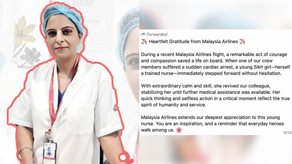 这名年仅25岁的护士帕明德·考尔(Parminder Kaur)受训于英国。她在从印度新德里飞往马来西亚吉隆坡的途中,忽然听到广播紧急寻求医疗援助,毫不犹豫地起身施援。
