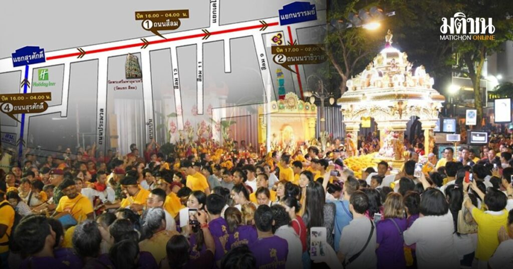 10月2日15:50,曼谷Narathiwat Ratchanakarin路(朝Sathorn–Narathiwat交叉口方向及通往Silom路方向)及周边路段出现交通拥堵,车辆行驶缓慢。Yan Nawa警察局发布公告称,由于“2025年九夜节(Navaratri)”将在Silom区Sri Maha Uma Devi寺(又称WAT KHAEK)举行游行活动,今日将封闭以下4条道路,提醒市民合理安排行程: