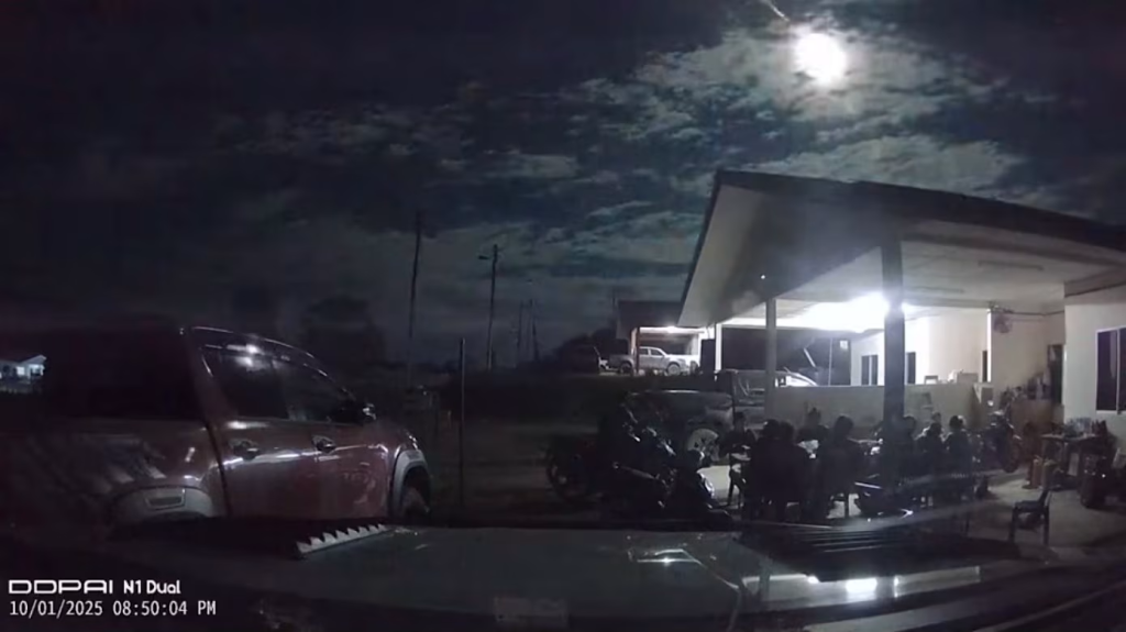 一道快速移动的光芒星期三(1日)晚上9点左右,闪过沙马拉祖工业园的上空,不少网民通过社交媒体贴文称目睹到这道光芒。