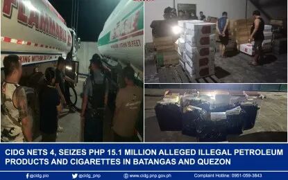 据菲媒报道,近日,菲刑事调查与侦查组(CIDG)通报,巴坦加斯分队于晚间11点50分在巴坦加斯市巴拉克塔斯区某加油站,抓获三名化名为“埃德”、“山姆”和“西德”的男性嫌疑人,其涉嫌非法销售及分销石油产品(俗称“搭售”)。行动中查获两辆油罐车,车内载有26,000升柴油、10,000升无铅汽油及4,000升优质汽油,总价值约914万比索。与此同时,在奎松省卢塞纳市,警方于周二凌晨在伊巴巴杜佩区抓获一名化名为“约瑟夫”的中国籍公民,其涉嫌销售非法香烟。在对达拉希坎路马约克鲁辛区某仓库的突击搜查中,共查获95个标准箱的各类品牌香烟,包括万宝路、马歇尔、财富、切斯特菲尔德、冠军及威力等品牌,总价值达603万比索。四名被捕嫌疑人将面临相应指控。