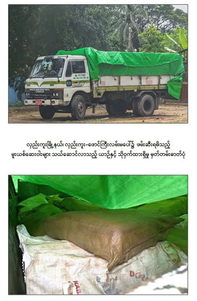 案件始于9月24日,安全部队在仰光省莱固镇区莱固-泡吉公路检查站对一辆日产Condor卡车进行例行检查时,从司机昂坎觉及跟车人特维漂处查获1439公斤冰毒,初步估值约360亿缅元。
