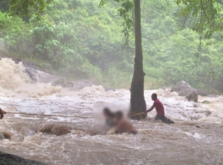 近期,泰国多地因持续大雨已发生多起安全事故。10月12日12时40分左右,考艾国家公园突发山洪,洪水顺势冲入那空那育府的Sarika瀑布区域。据那空那育府第一保护区管理局局长约萨瓦介绍,考艾国家公园园长猜亚的报告显示,公园第6管理区负责人及瀑布驻守工作人员在接到暴雨警报后,第一时间通知游客从瀑布区域撤离。但由于山洪来得极为迅猛,仍有3名游客未能及时撤离,被困在瀑布中央的水中小岛上。