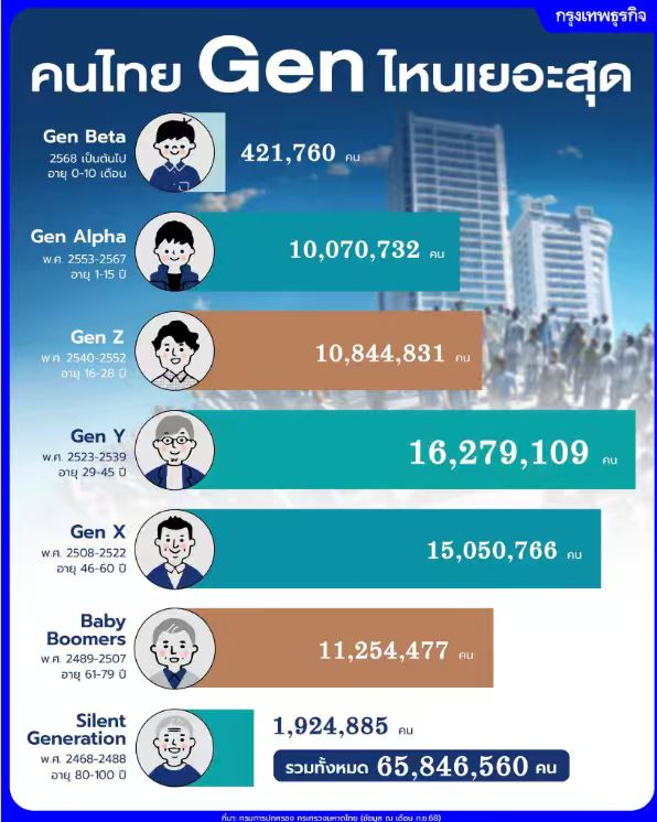 10月14日,据泰媒报道,截至2024年,泰国总人口为6580万人,但人口结构正在快速变化。其中,Y世代和X世代合计超过3100万人,正处于“工作末期至退休前阶段”。