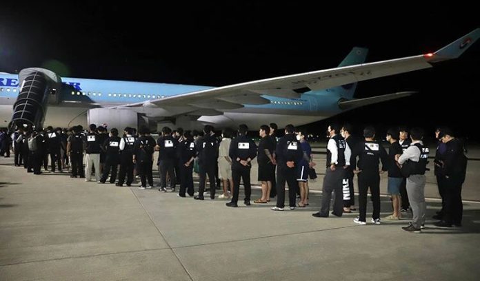 同期两国往来人数显著增长:韩国赴柬人员从2021年的5476人增至2024年的100820人,但返韩人数始终滞后,每年均有数千人“下落不明”。柬埔寨移民部门记录显示更高数值:2021年6074名韩国人入境,2022年64040人,2023年激增至170171人,2024年达192305人,2025年1月至7月已有106686人记录在案。某些年份数据近乎韩国官方统计两倍,暗示大量韩国人可能经泰国、越南等邻国转道入境,规避直飞记录。这一问题在柬埔寨涉及韩国公民的网络诈骗窝点被连续捣毁后引发全球关注。韩国外交部第二次官金智娜本月率特别代表团赴金边,与柬埔寨当局商讨合作遣返事宜及跨国犯罪联合调查。会谈成果显示,柬埔寨当局于10月17日将64名涉非法网络操作的韩国人驱逐出境。此前9月底一次突击行动中,警方罕见地发现三名韩国籍头目主导重大诈骗集团——该领域传统上由中国籍人员掌控。