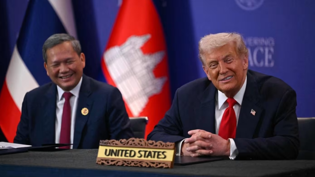 特朗普在亚细安峰会上说,自己在任内结束了八场战争,柬埔寨首相洪马内已提名他角逐诺贝尔和平奖。