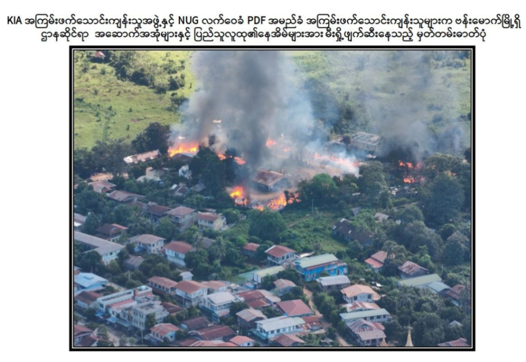根据安和委发布的消息,近期,“克钦独立军(KIA)”与当地“人民防卫军(PDF)”的联合武装力量在班貌镇(ဗန်းမောက်မြို့)采取了军事行动,其中包括对当地部分民用住宅及政府建筑的焚烧。