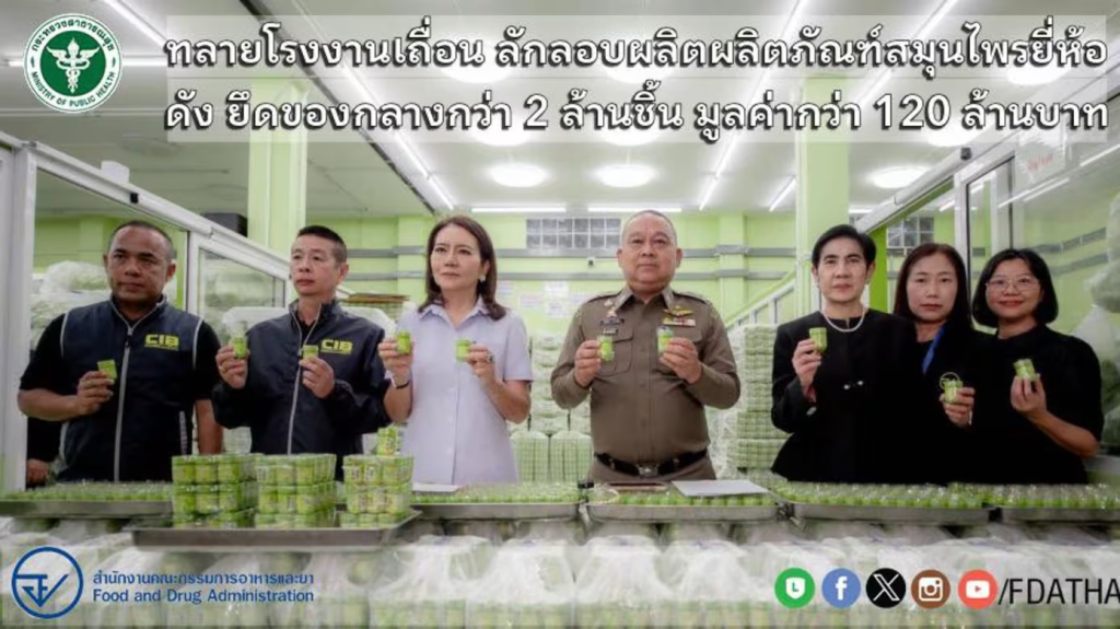 泰国食品与药物管理局与警方昨天(30日)在洪泰位于曼谷及龙仔厝府(Samut Sakhon)的四家非法制造厂展开突击行动,查封九种草药产品,总数超过235万件,初估市值达1亿2000万泰铢(约480万新元)。