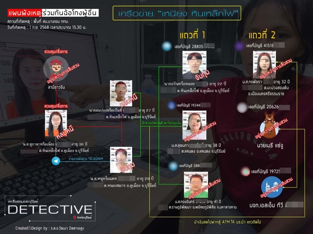 经检查,阿廷的账户每次进出30-50万泰铢,流通额超200万泰铢。阿廷在审讯中供认,他受雇开设“人头账户”,并代取现金,每天全天在银行排队,若无指令就过号重取,有钱入账则立即取现交给27岁的颂蓬和29岁的努(颂蓬女友),此二人负责在银行监督阿廷。之后,颂蓬两人将现金从ATM存入,转账给素帕达(中国籍头目的妻子,颂蓬的姐姐),每日循环。