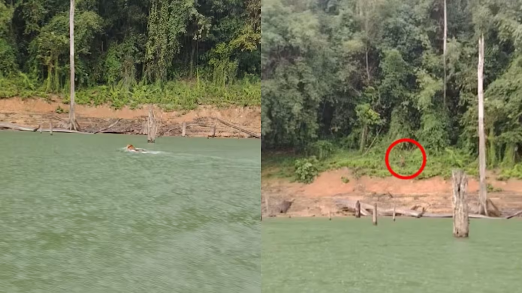 视频中可见,一只马来亚虎当时正游过湖面,很快地游到岸边后,它就消失在茂密的树林中。几名公园巡护员当时乘坐快艇从旁驶过,见状后纷纷拿起手机拍下视频,并大声欢呼,为它加油打气。