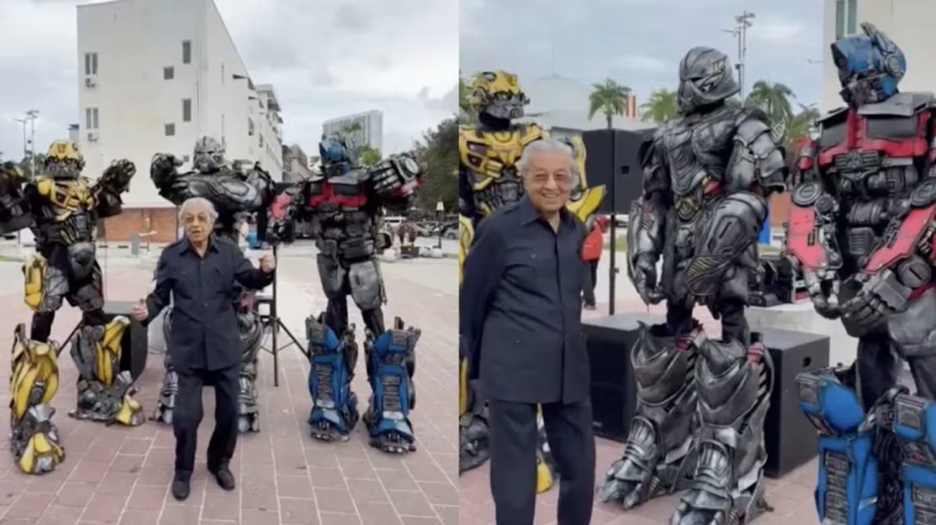 家东南亚资讯百岁马哈迪与变形金刚共舞 ... 东南亚资讯 百岁马哈迪与变形金刚共舞 网民:舞技不输特朗普 By maomao 2025年11月8日 0 1 分享 FacebookTwitterPinterestWhatsApp 马来西亚前首相马哈迪今年迈入100岁身体仍见硬朗,他看见变形金刚扮演者时兴奋地摇摆身体跳舞,展现活力的一面。 马哈迪的Facebook官方账号昨天(7日)上载一段视频,显示马哈迪到访他曾担任国会议员的浮罗交怡(Langkawi),当他看见当场有几个变形金刚扮演者时,满脸笑容地走过去,然后在他们面前跳起舞来。 在视频里也可看见马哈迪和当地民众亲切合照,气氛融洽。 不少网友留言大赞马哈迪风采依旧,笑称“马哈迪哥还是很有活力”、“舞技不输特朗普”,也有人打趣形容他是“最年轻的100岁”。 前一篇文章购房需谨慎!缅甸建设部发布防诈骗指南下一篇文章泰柬边境围栏进度近半,两国联合勘察立桩 maomao 相关文章 东南亚资讯 卫星图像显示 诈骗园区内大部分建筑依然完好 2025年11月11日 东南亚资讯 仰光港十个月接卸609艘集装箱船 2025年11月11日 东南亚资讯 缅甸政府设定新季稻谷收购基准价 2025年11月11日 留下一个答复 取消回复登录发表评论 - Advertisment - Ta的帖子 多人受伤!泰国一旅游巴突发侧翻,救援车辆再发二次事... 2025年11月11日 卫星图像显示 诈骗园区内大部分建筑依然完好 2025年11月11日 仰光港十个月接卸609艘集装箱船 2025年11月11日 缅甸政府设定新季稻谷收购基准价 2025年11月11日 装载更多