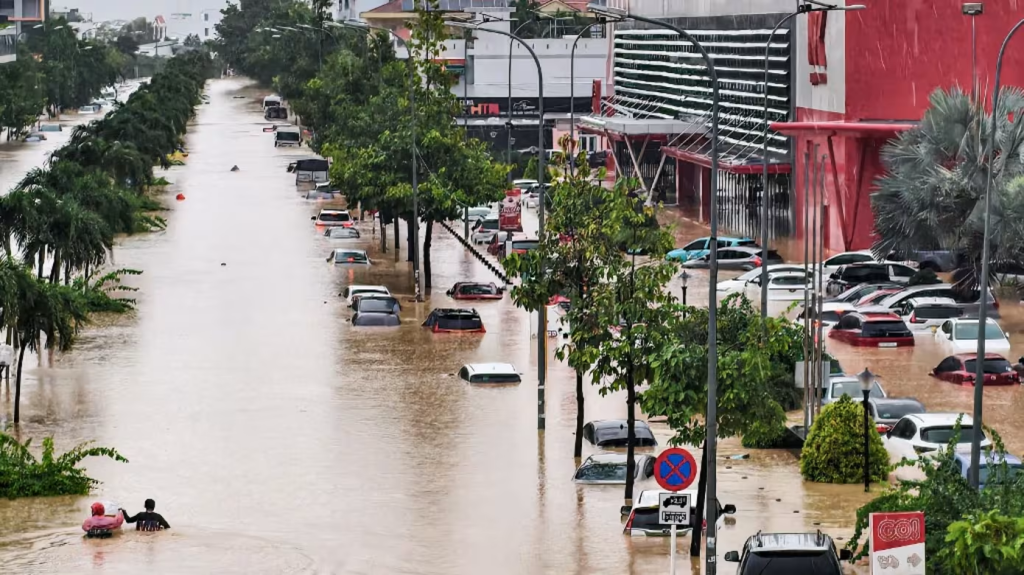 沿海旅游圣地芽庄市(Nha Trang)的街区被洪水淹没,数百辆汽车被浸泡在水中。