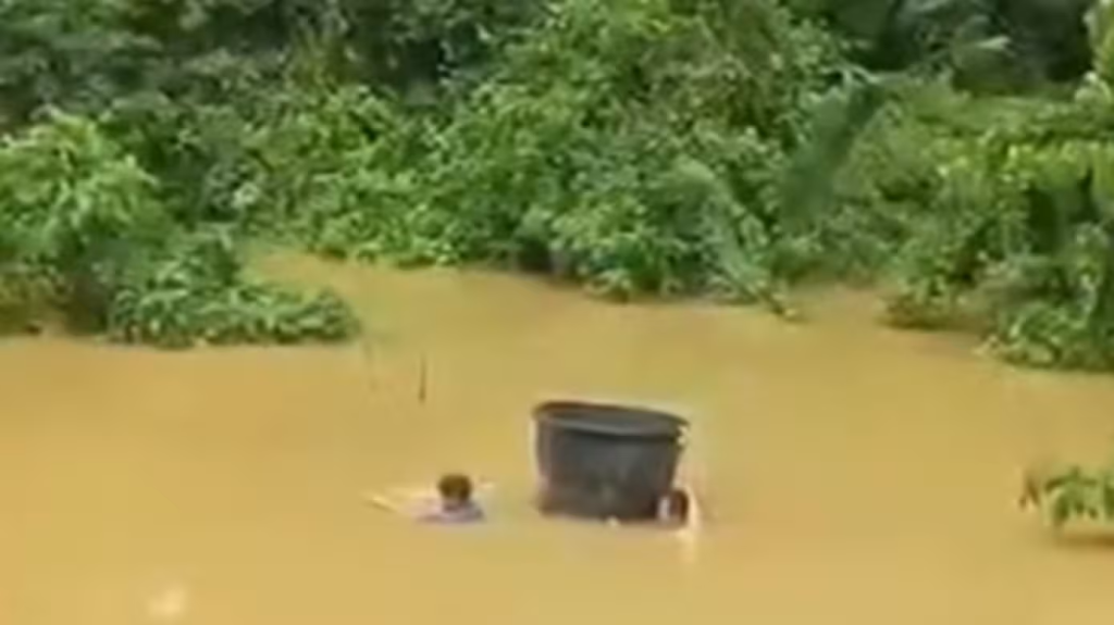 Tiktok用户yusoffpelamindanwiring2 在11月29日上载的视频显示,一名中学生在及肩深的洪水中游泳前进。