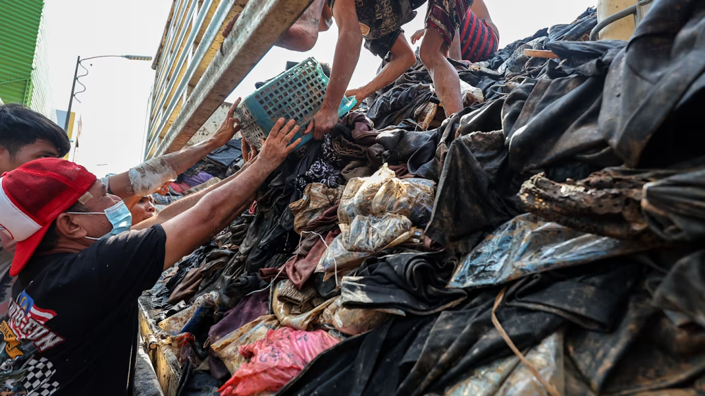 南部宋卡府合艾市的洪水退去后,昨天(29日)的合艾广场和金永市场一片热闹景象。商家将被洪水浸泡、沾满淤泥的商品摆出清仓抛售,包括家居用品、床上用品及衣物等,有些已经清洗,有些尚未处理。