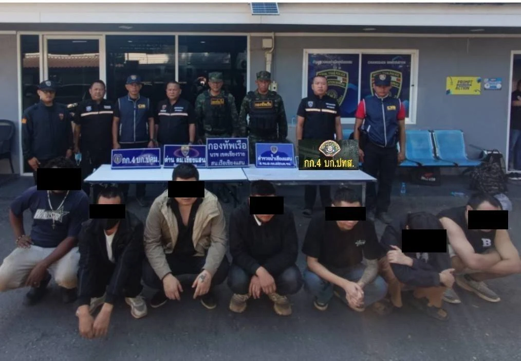 12月3日,清莱府泰老边境检查站在湄公河附近公路巡逻时,发现7名外籍男子结伴步行,形迹可疑。经拦截盘查,确认其中6人为中国籍,1人为卢旺达籍,均未持有任何合法入境或停留泰国的文件。执法人员当场将7人全部逮捕,并以“非法入境及非法停留泰国境内”罪名提起指控。