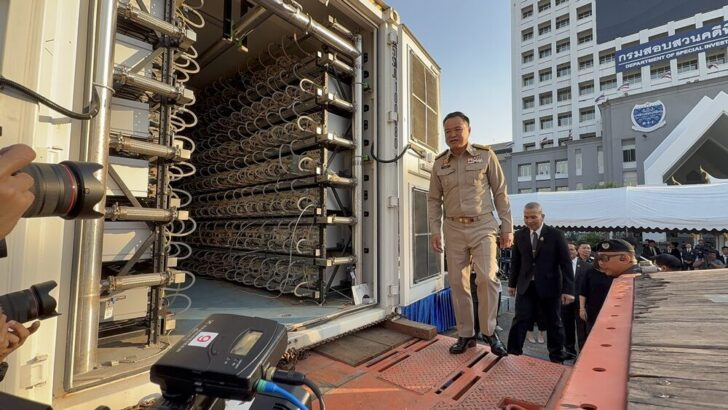 – 查获物资:比特币矿机3,642台,总价值约2.7亿铢;电力系统及配套设备价值约3,000万铢;