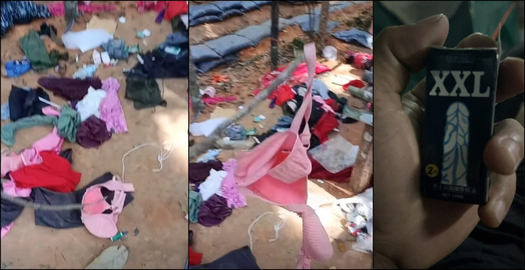 在第一个视频中,泰国士兵到达柬方前线军营时发现,此处似乎被改造成了卖淫场所,安全套、壮阳药、假阳具、假阴道、润滑凝胶、扑克、赌博设备和散落各处,一些营地还有大量女性内衣裤。其中,还有泰国士兵在清理时发现泰国知名泡面Mama的画面,该脸书主页写道:“不是说不吃泰国货吗”。随后的隧道视频显示,该地下隧道绵延数十米,由凿岩及复杂挖掘形成,内部划分为武器库、备用弹药室及坚固的避难室。
