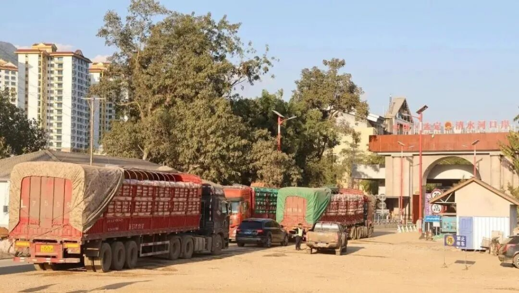 据报道,当前缅中清水河边贸口岸贸易往来持续升温,每日有200余辆货运车辆经该口岸进入中国境内,口岸货物流通量随果敢特区农产品收获季的到来实现显著增长。