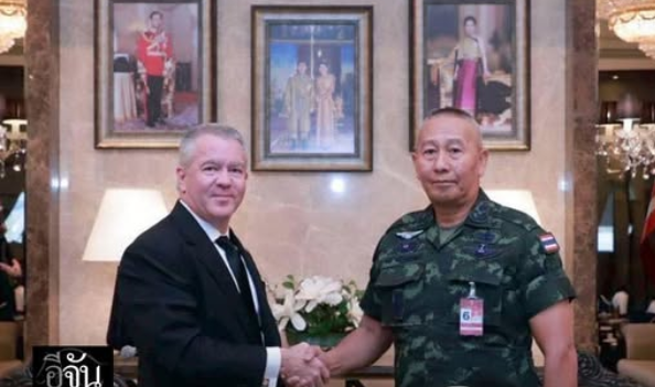 1月9日,泰国陆军司令帕纳上将会见美国国务院东亚及太平洋事务助理国务卿迈克尔,以及美国驻泰国大使肖恩一行。会谈在泰国陆军总部朱拉隆功皇家军事学院展厅、泰国陆军博物馆大楼举行,双方就泰美军事合作、安全事务以及泰柬冲突形势进行了交流。