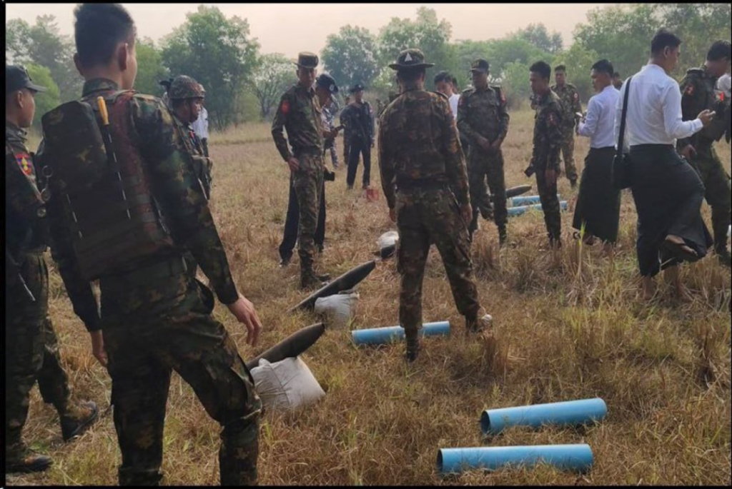据缅甸国家和平与安全委员会发布的消息,2月21日上午6时30分许,仰光省莱古镇辛蓬(北)村附近的农田内发现6枚疑似自制火箭弹,军队接报后迅速前往现场处置。