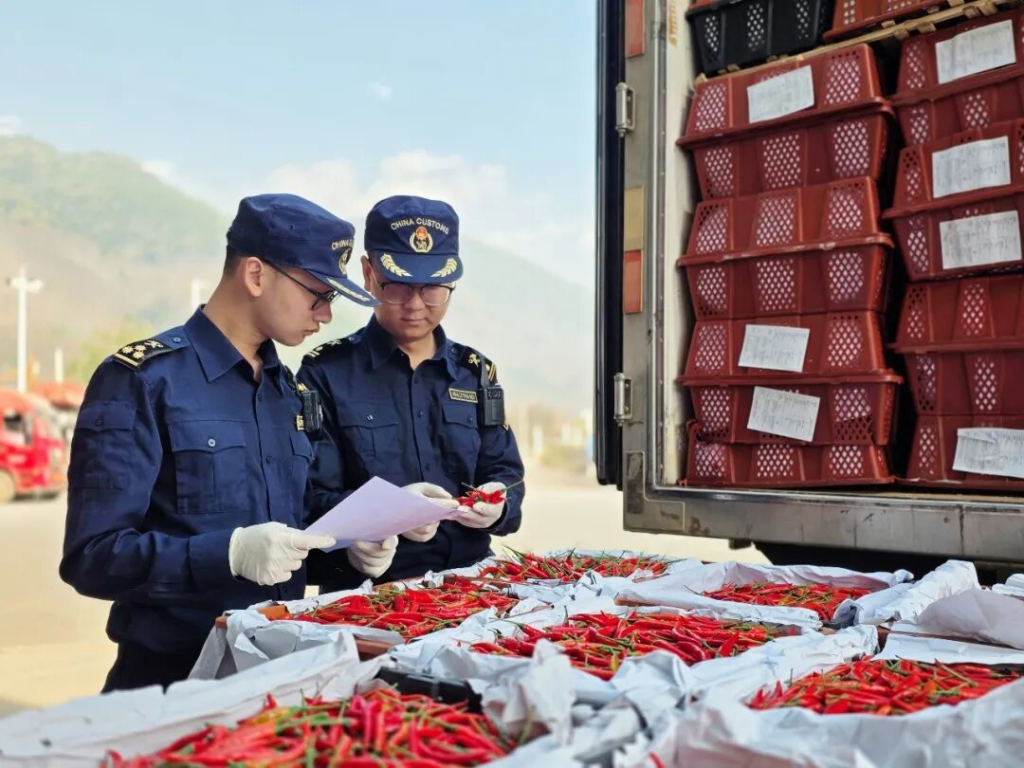 这一效率提升得益于口岸查验设备的智能化升级。海关现场启用H986大型集装箱/车辆检查系统,对进口蔬菜实施非侵入式查验。孟定海关监管一科科长寸待荣介绍,移动终端可实时接收机检图像,“无需开箱即可精准识别,既保障查验精准度,又大幅压缩通关时间”。