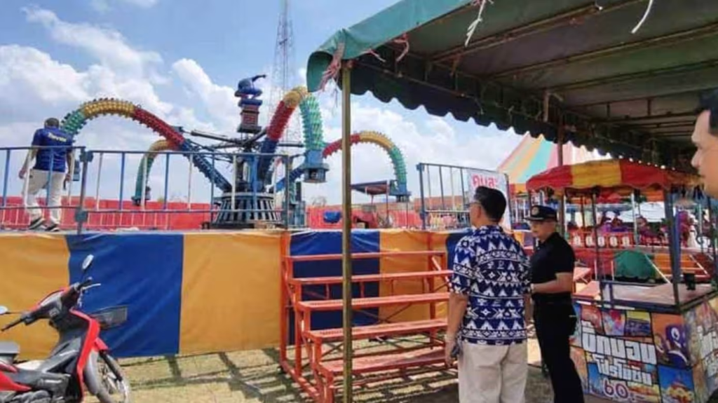 周三(4日)泰国呵叻府坤武里县举行年度“陶苏拉纳里胜利纪念庆典”期间,一座章鱼形游乐设施于晚上约8点突然发生故障,导致两名14岁少女受伤。
