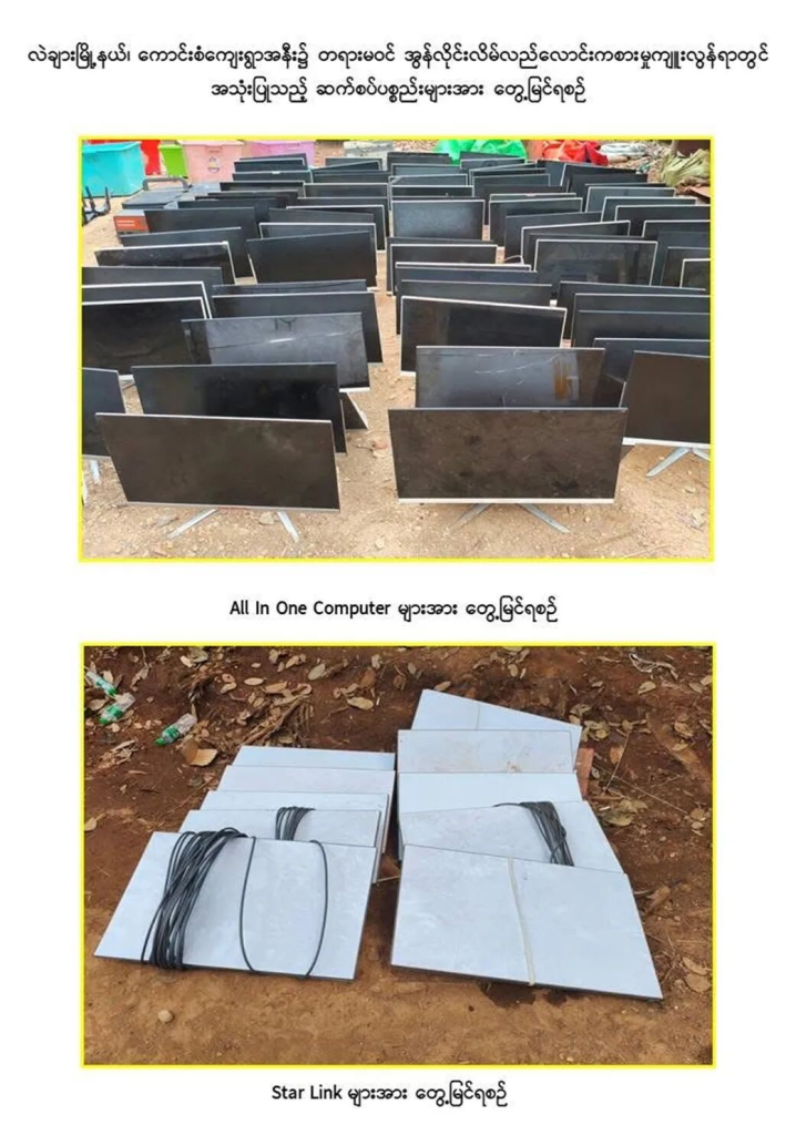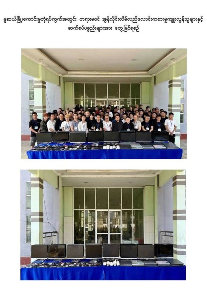下午,在莱卡镇高伞村附近清剿行动中,安全部队查获9栋建筑物、1个仓库及Starlink设备10套、电脑55台、电源设备10套等物品,并抓获49名中国籍人员和1名越南籍人员。所有涉案人员及设备将依法依规继续处理。