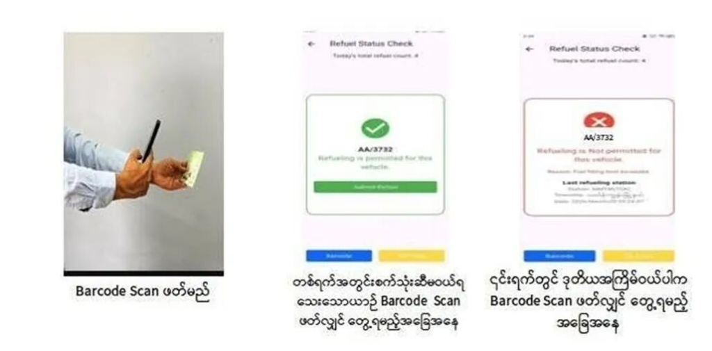 因交管部门发放的车辆执照卡(Wheel Tax卡)条码错误,二维码(QR Code)燃油购买系统启用后出现部分车辆无法加油问题。该系统于3月12日起在内比都、仰光、曼德勒和东枝等城市正式实施,要求汽车通过扫描执照卡背面条码识别,摩托车及Oway三轮车则由加油站生成专属QR Code完成加油销售。