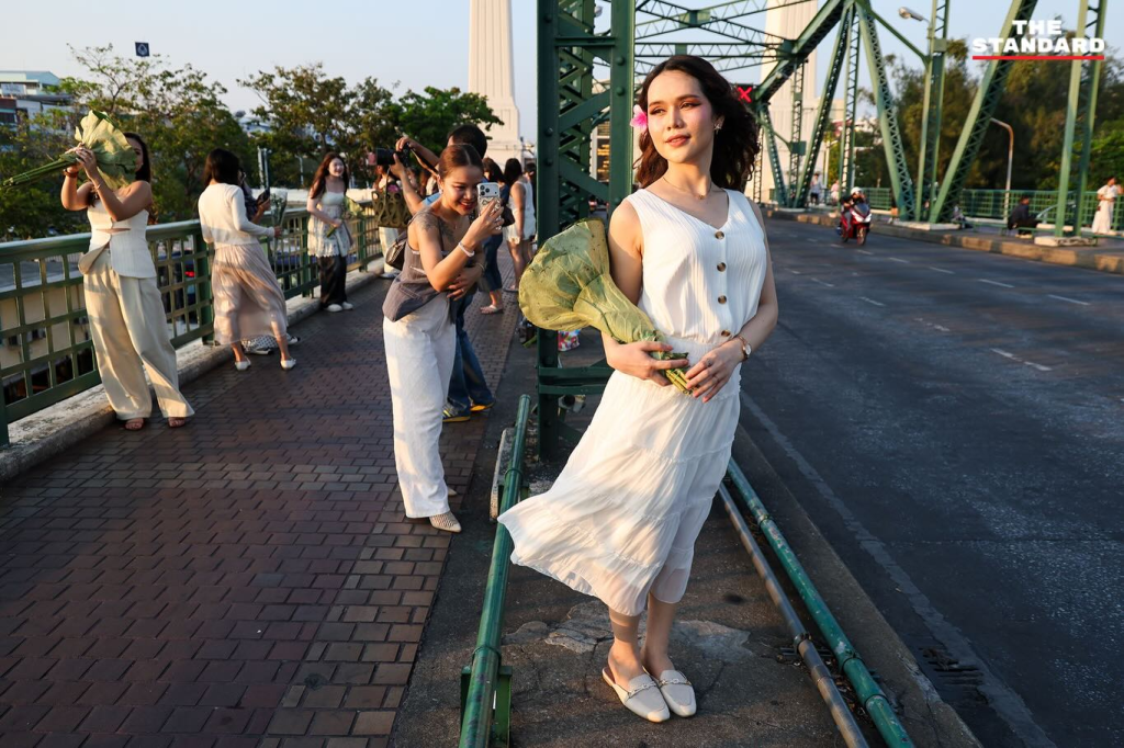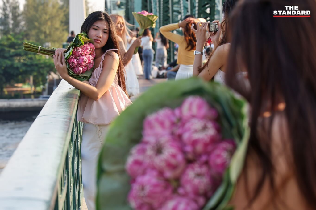 这一现象也展现了新一代年轻人的创造力。他们将与泰国文化及佛教密切相关的花卉重新诠释,使其转化为能够体现个性与风格的时尚元素。与莲花合影的画面呈现出柔和、沉静且富有艺术层次的氛围,与其他花卉拍照风格形成明显差异。