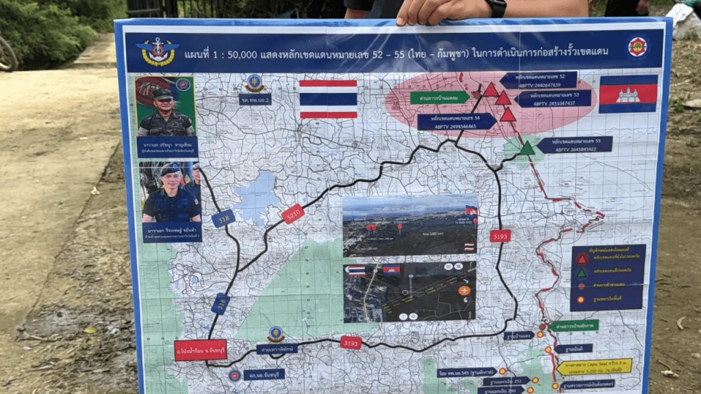 3月17日,泰国军方公布了泰柬边境“安全围栏”项目最新进展。作为先行试点区域,尖竹汶府Pong Nam Ron县将沿边境围栏修建道路,总长约1310米,覆盖52–54号主要过境点,目的是加强国家安全,维护边境地区的和平与稳定。目前,国家排雷行动中心已完成该区域的雷区勘测与清除工作,确保地面安全,为后续工程做好准备。