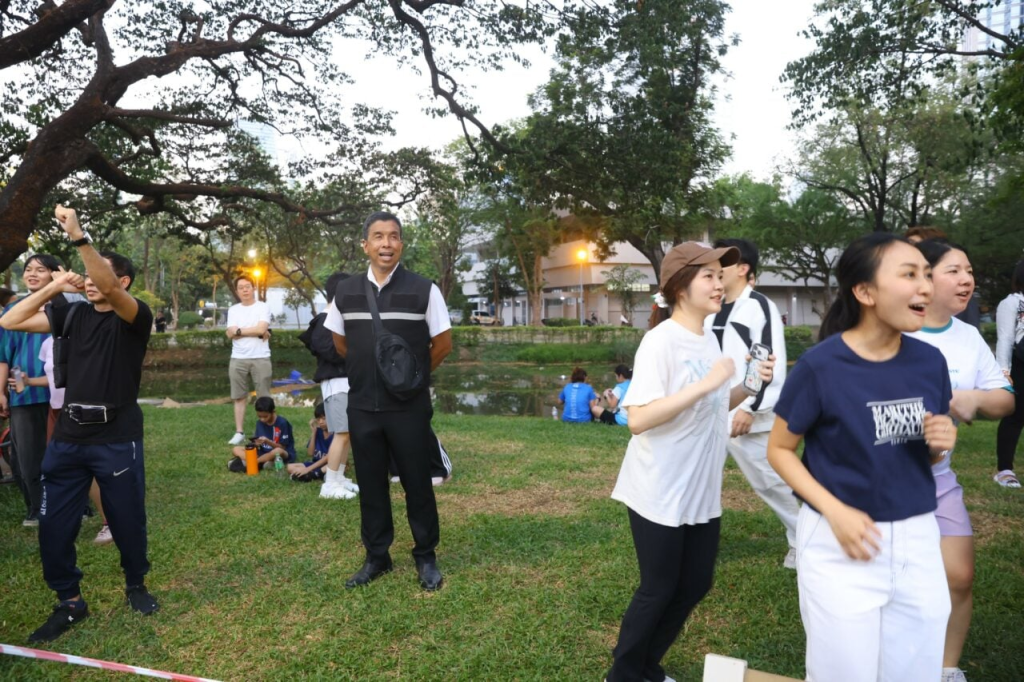 查察在发言时向企业界和Dada表达了感谢,他表示,这其实是民众自发的活动,曼谷管理人员只是提供了场地。屏幕、音响和舞台方面的困难则是由企业帮忙解决的,现在的舞台更大、音响更强了,希望能有更多这样的好活动,让民众可以参与,因为健康是买不到的。如果可以,他想把这类活动推广到每个公园、每个地方,以此促成各领域的共同合作。曼谷本身不擅长做健身操活动,是来自多方协作的结果,包括各位义工老师和民众。活动完全免费,参与者都很开心,后续会尽量推广到最多的地方。