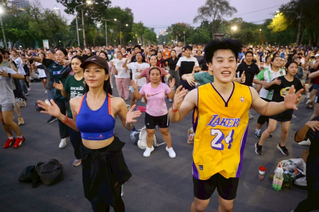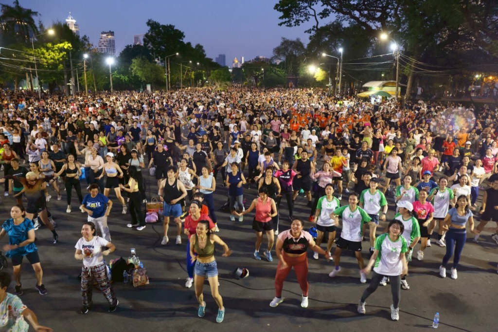 曼谷掀起健身操热,3000人共舞挤爆广场