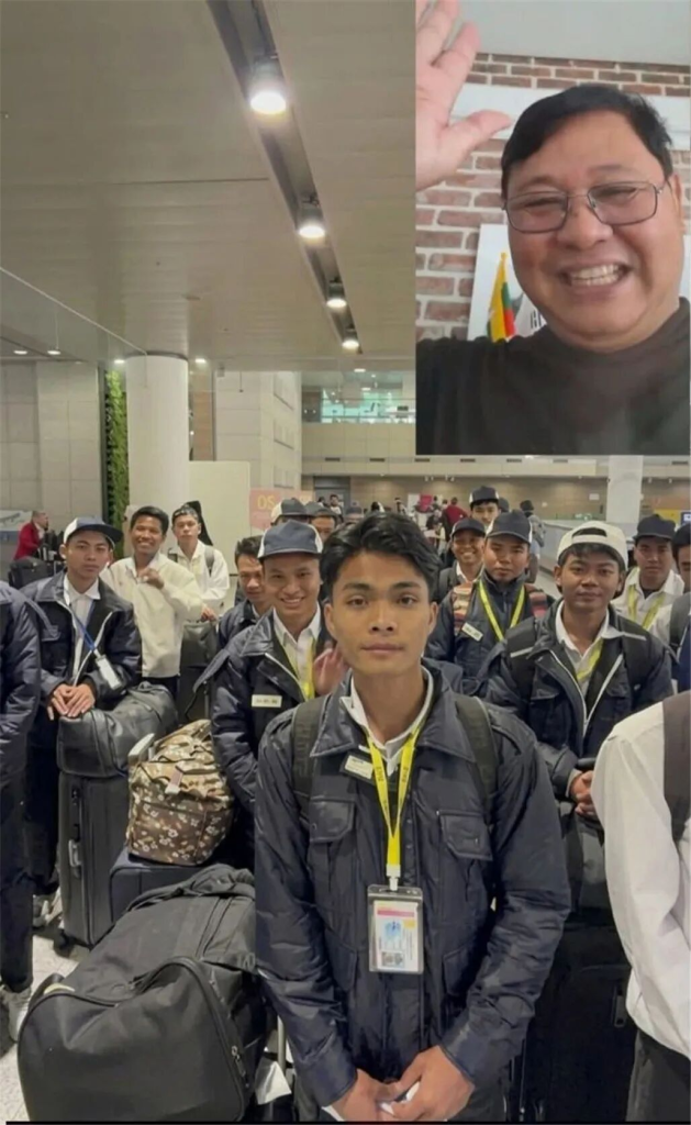 缅甸驻韩国大使馆临时代办吴苗敏貌通过视频通话向新抵达的劳工表示欢迎。劳工事务参赞亲赴机场迎接。临时代办在视频通话中热情欢迎新劳工,并嘱咐他们如遇困难可随时联系大使馆。
