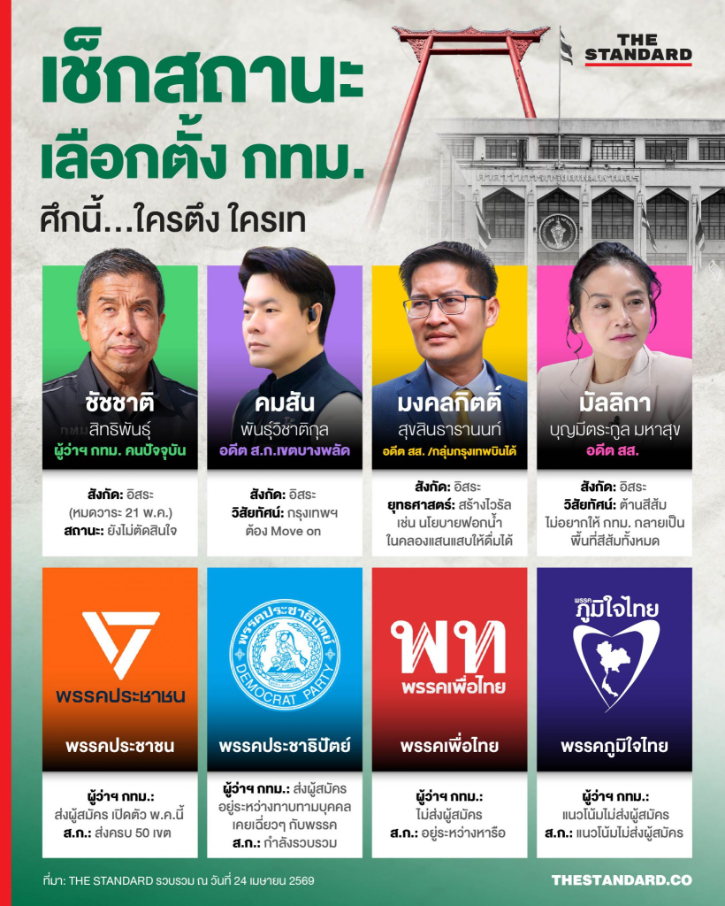– 查察:现任曼谷市长,目前表现从容,表示想先专注于剩余任期的工作。虽然他还没明确表态是否争取连任,但他强调,即使再选,也会坚持以独立候选人的身份出战;